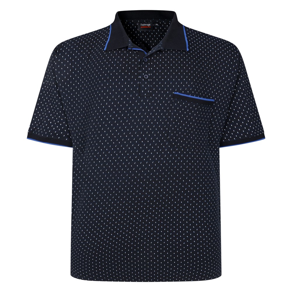 Espionage - All Over Geometric Print Jersey Polo - Navy