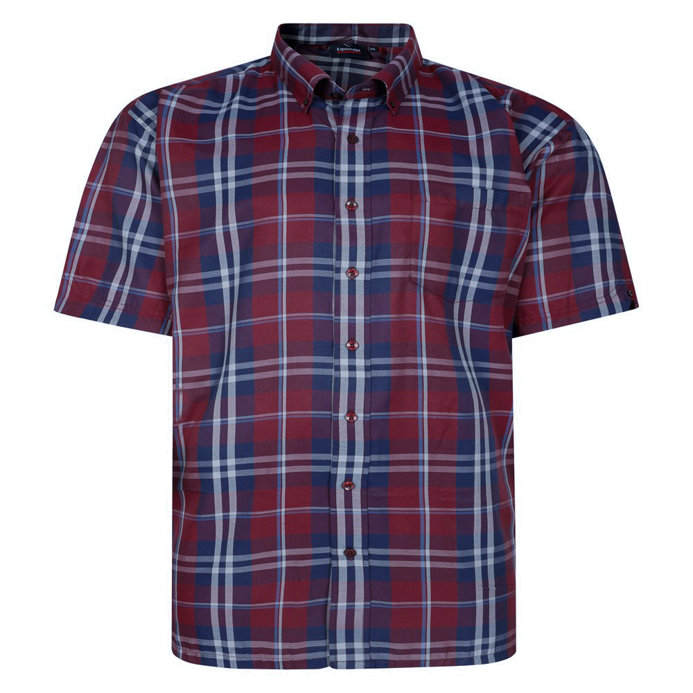 Stilren og komfortabel skjorte i flotte bordeaux, blå og hvide tern – perfekt til både hverdagsbrug og mere afslappede anledninger. Skjorten har klassisk button-down krave, brystlomme og en rummelig pasform, der giver god bevægelsesfrihed.