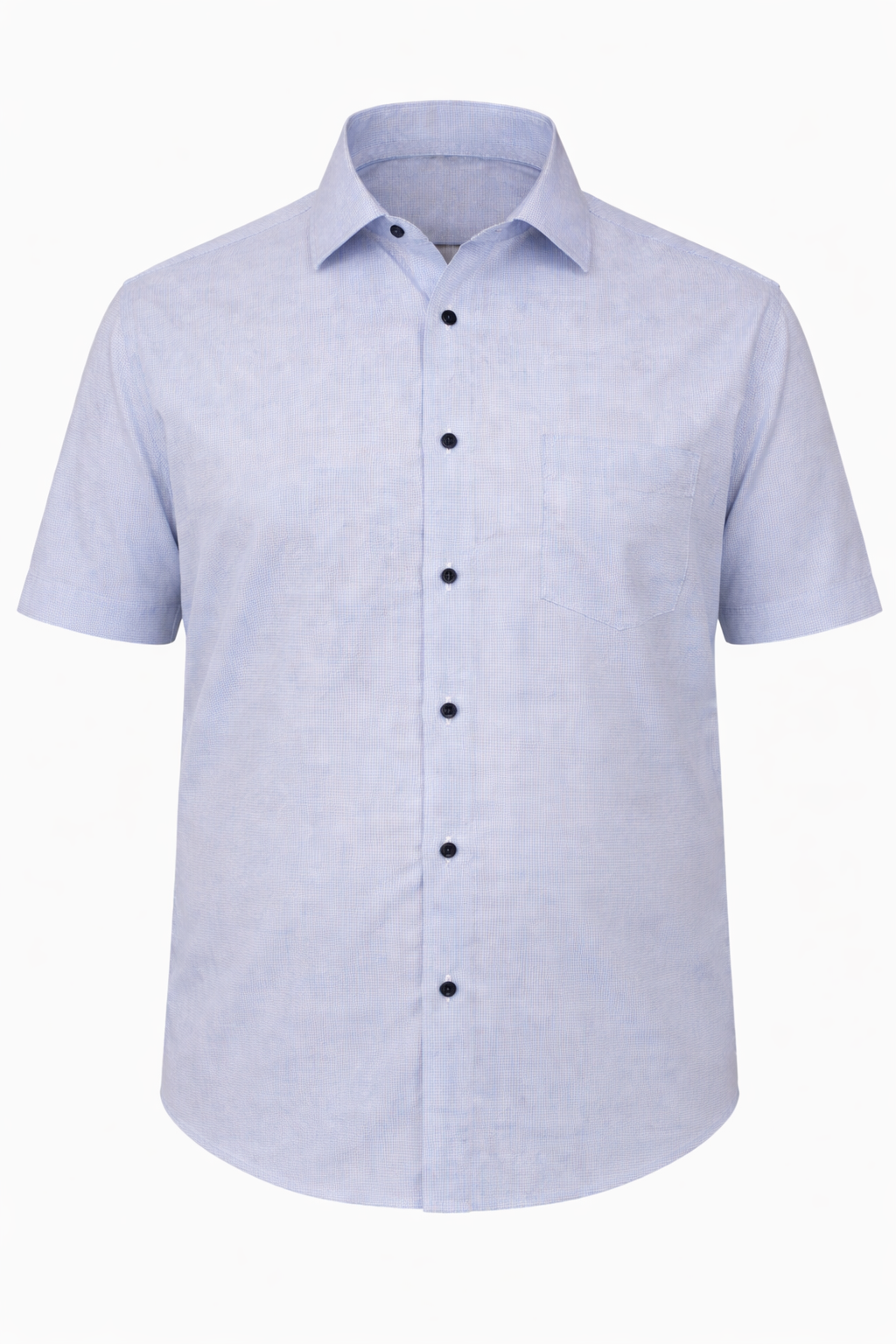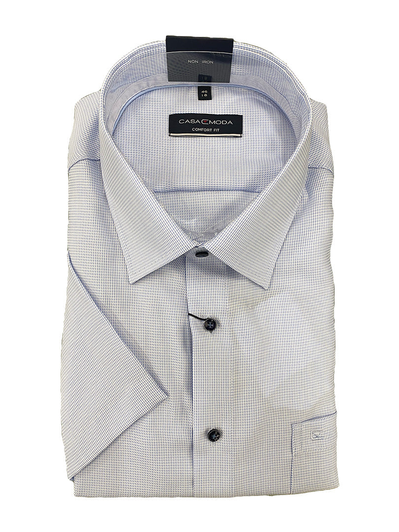 Smuk eksklusiv kvalitetsskjorte fra Casa Moda med korte ærmer. Her er tale om en virkelig High Fashion luxusskjorte for den kræsne og moderne mand. Denne i en flot lys blå farve med blå struktur. Skjorten har brystlomme med lille broderet logo. En sand fryd for øjet og fantastisk at have på.