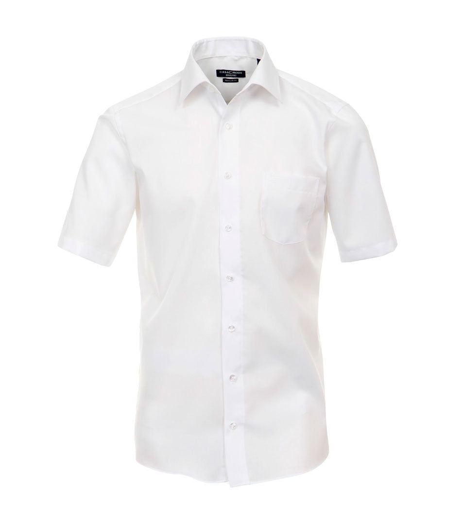 Casa Moda - Comfort Fit Hvid m. hvide knapper og Korte Ærmer