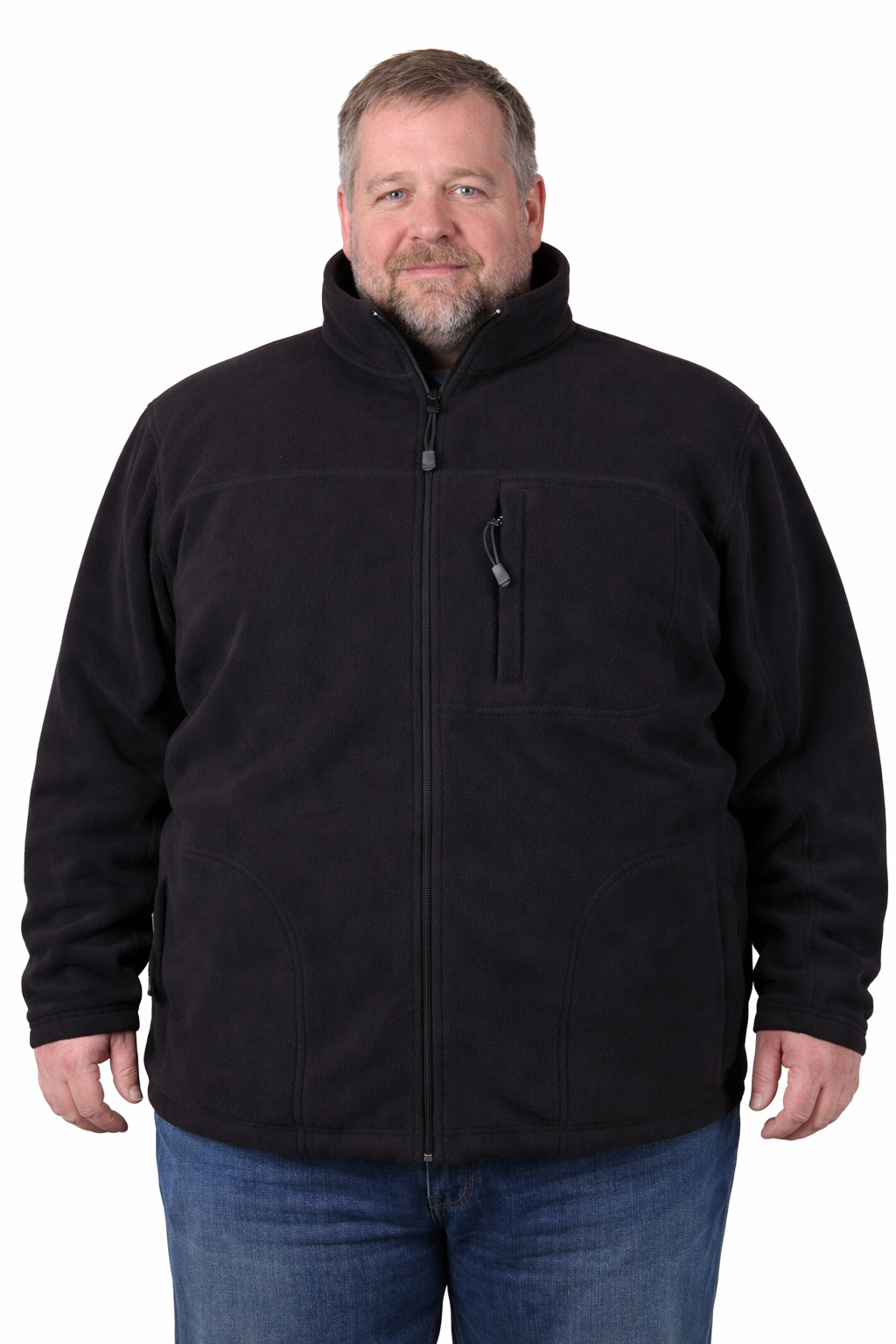 Varm, dejlig og meget kraftig fleece jakke med lynlåslukning og flere udvendige lommer med lynlås samt to indvendige lommer. Jakken har forneden elastiksnører som gør det muligt at stramme jakken. Varmt og meget blødt for. Denne i farven sort.