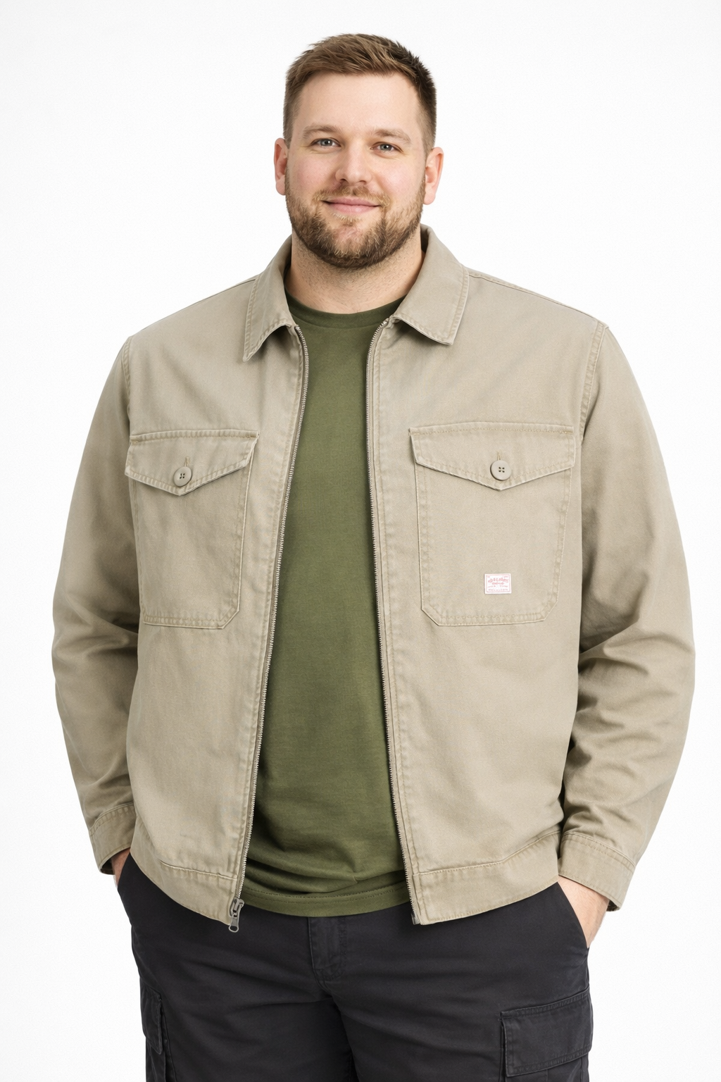Designet er både klassisk og funktionelt med gennemgående lynlås, to rummelige brystlommer med knaplukning samt 2 dybe sidelommer, der giver god plads til hænder eller småting. Den regulære pasform sikrer komfort og bevægelsesfrihed i hverdagen.